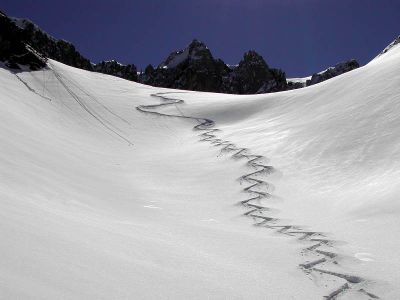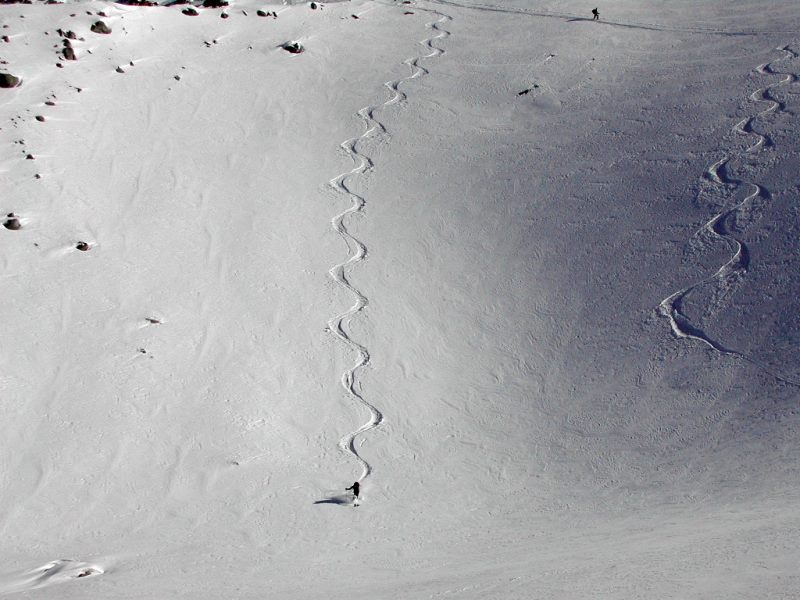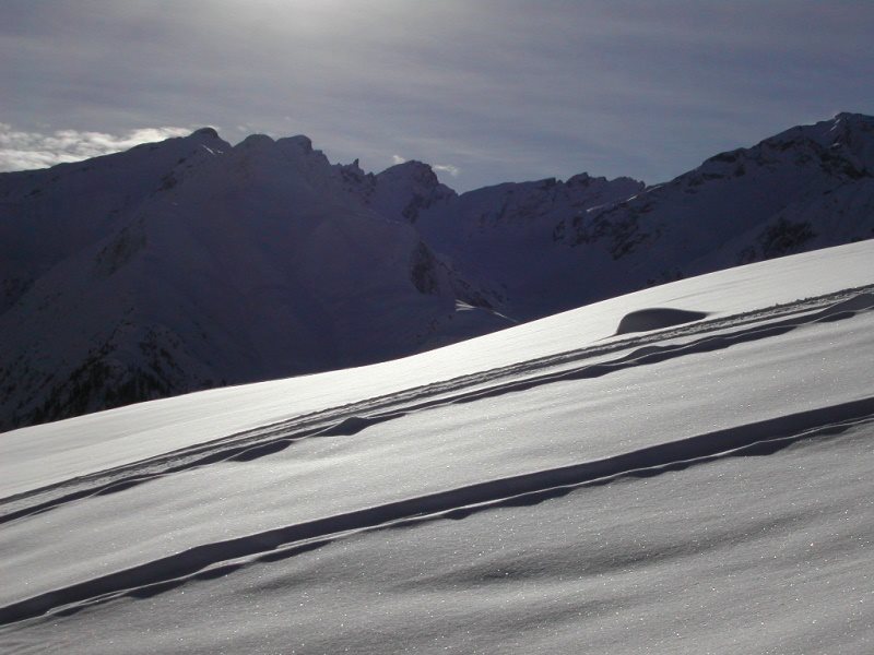 Schnee: oben Pulver, unten leichter Bruchharsch mit Pulverauflage
