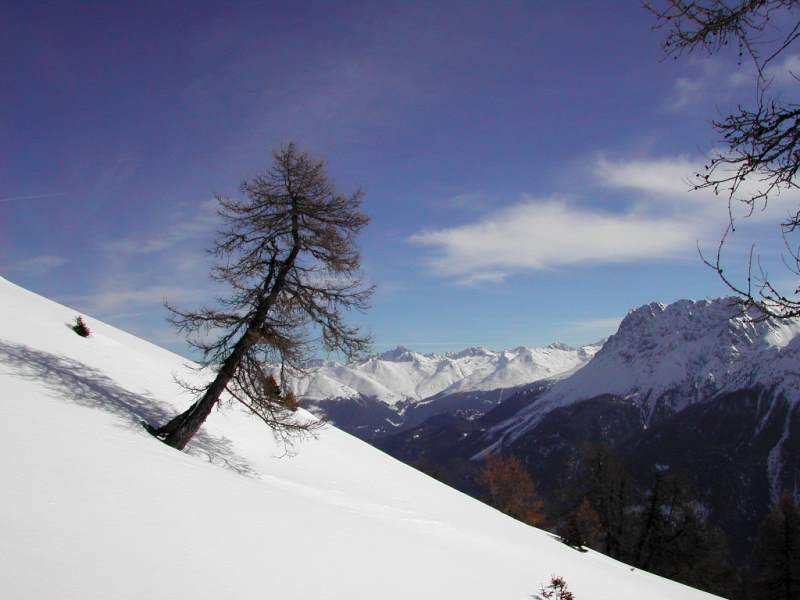 Wetter: -3°, ziemlich sonnig, oben starker Wind