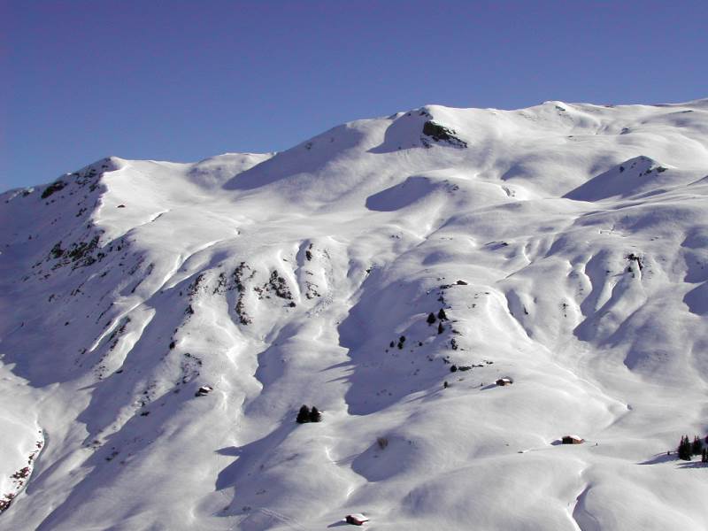Schnee: Pulver, oben verblasen/windgepresst