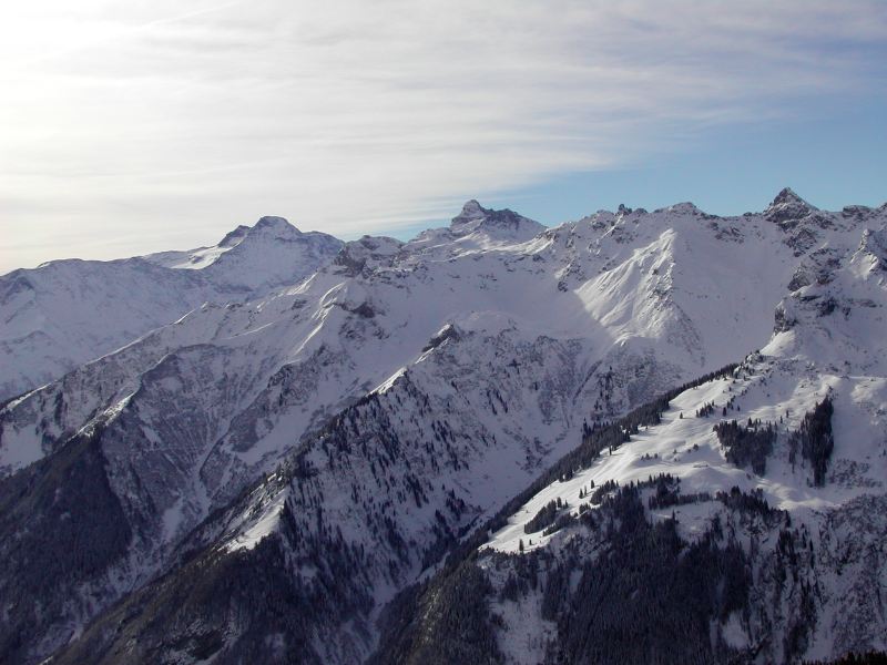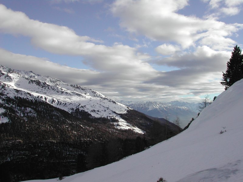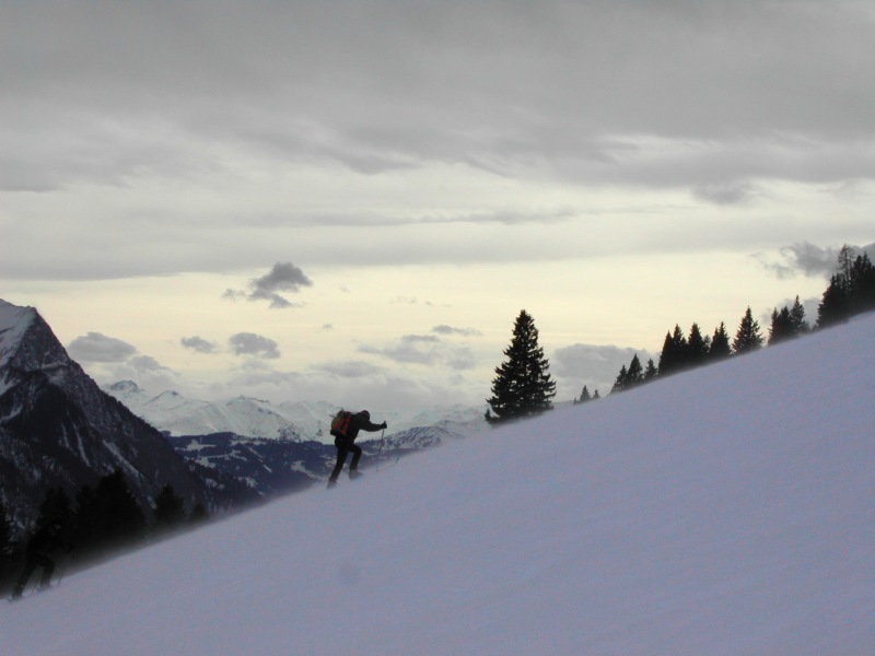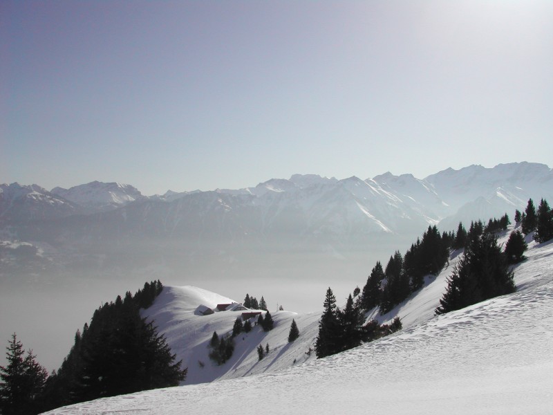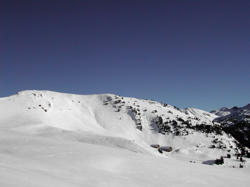 Schnee: Pulver, oberhalb 2100 mit wenig Unterlage, Rücken teils freigeblasen, unter 1200m an steilen S-Hängen leichter Harsch