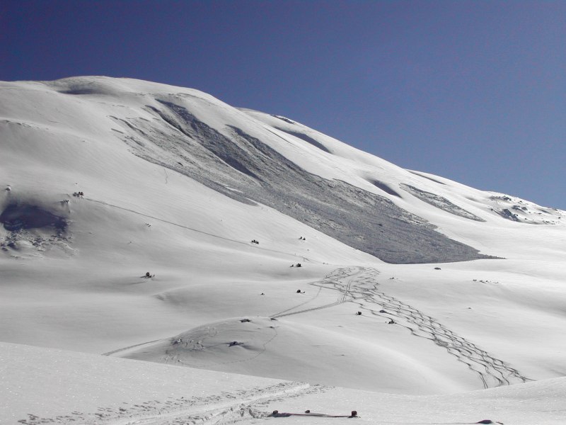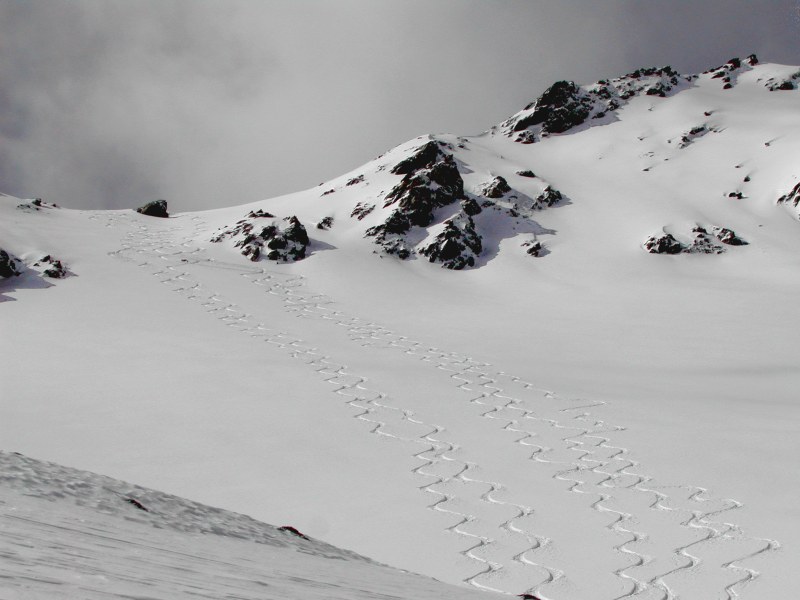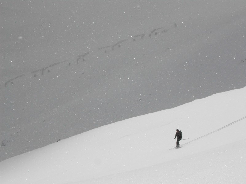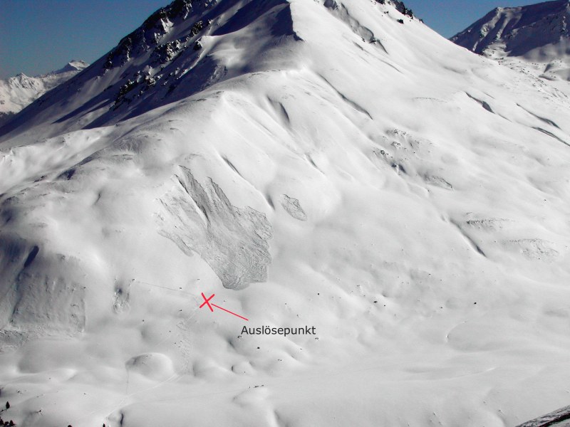 am Daint nach Fernauslösung eines Schneebretts (300m Distanz) umgedreht