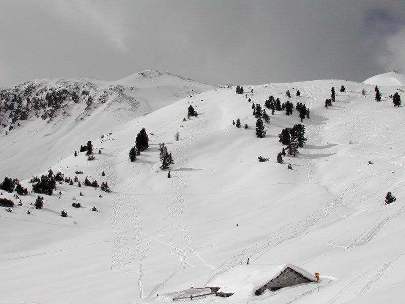 Schnee: Harsch, teils stark zerfahren, unterhalb 1500 leicht sulzig