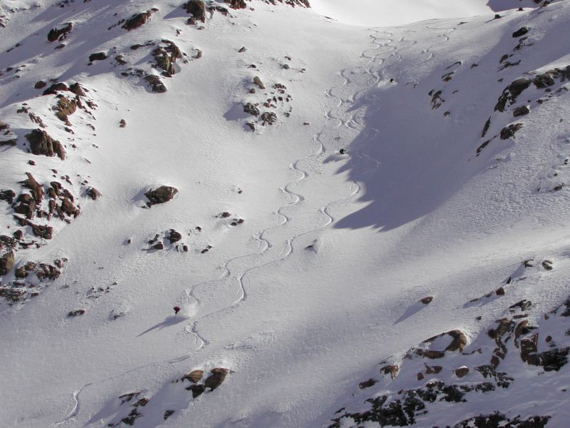 Schnee: Pulver, oben vereinzelt Steinberührung