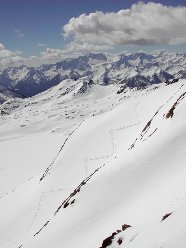 Route: Zufallhütte 2265m - Pederspitze - Abfahrt bis 2750m - Schöntaufspitze - Zufallhütte