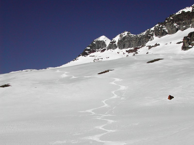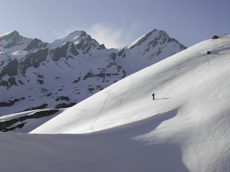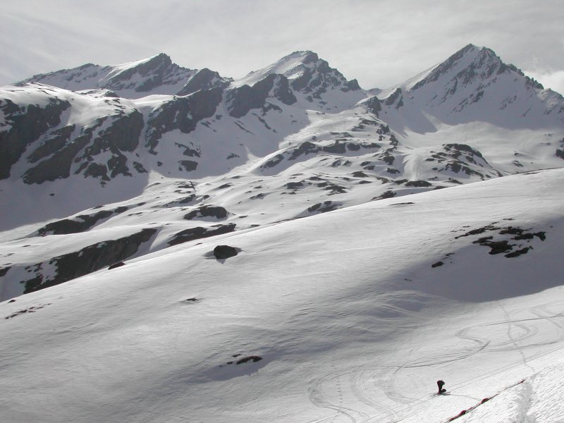 Route: Podestatsch Hus 1988m - Wissberg 2980m bis P. 2780m - Abfahrt bis 2400m - Gletscherhorn - Podestatsch Hus