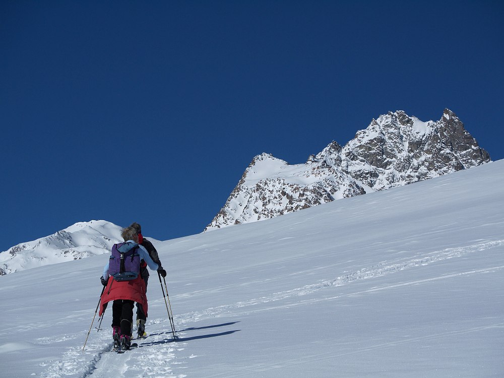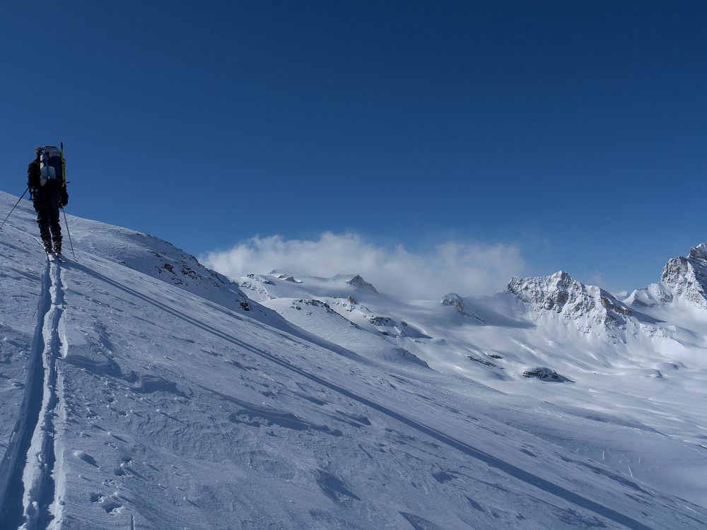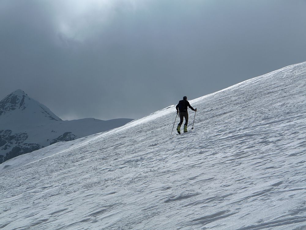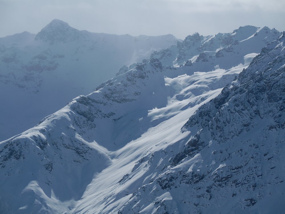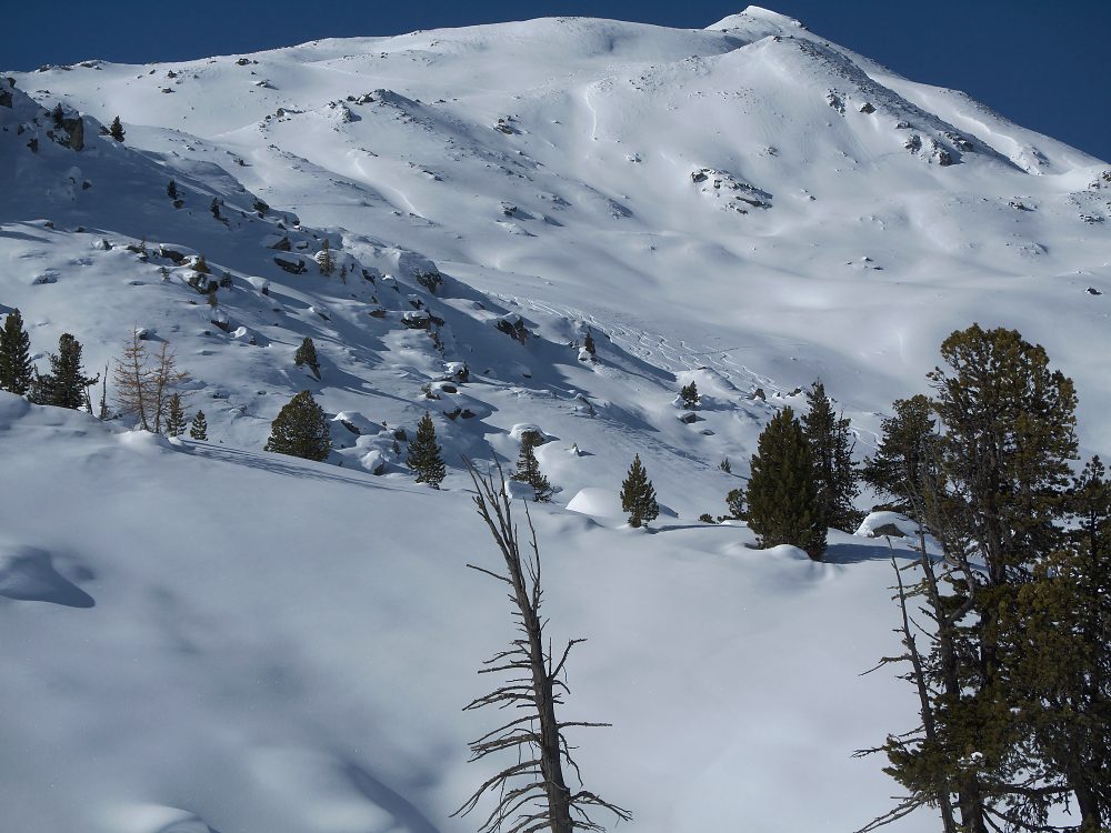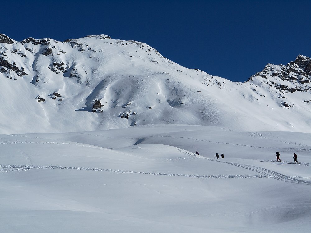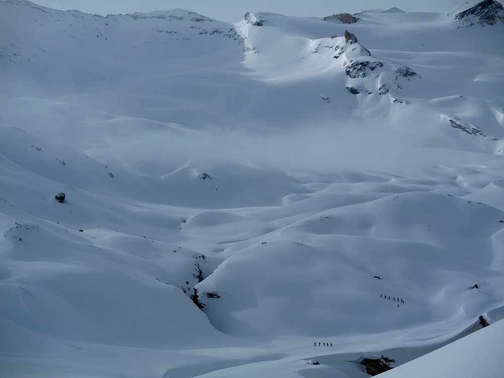 Schnee: schattseitig Pulver, sonst Bruchharsch/Harsch, viele Spuren