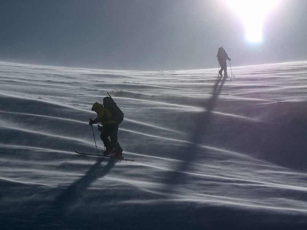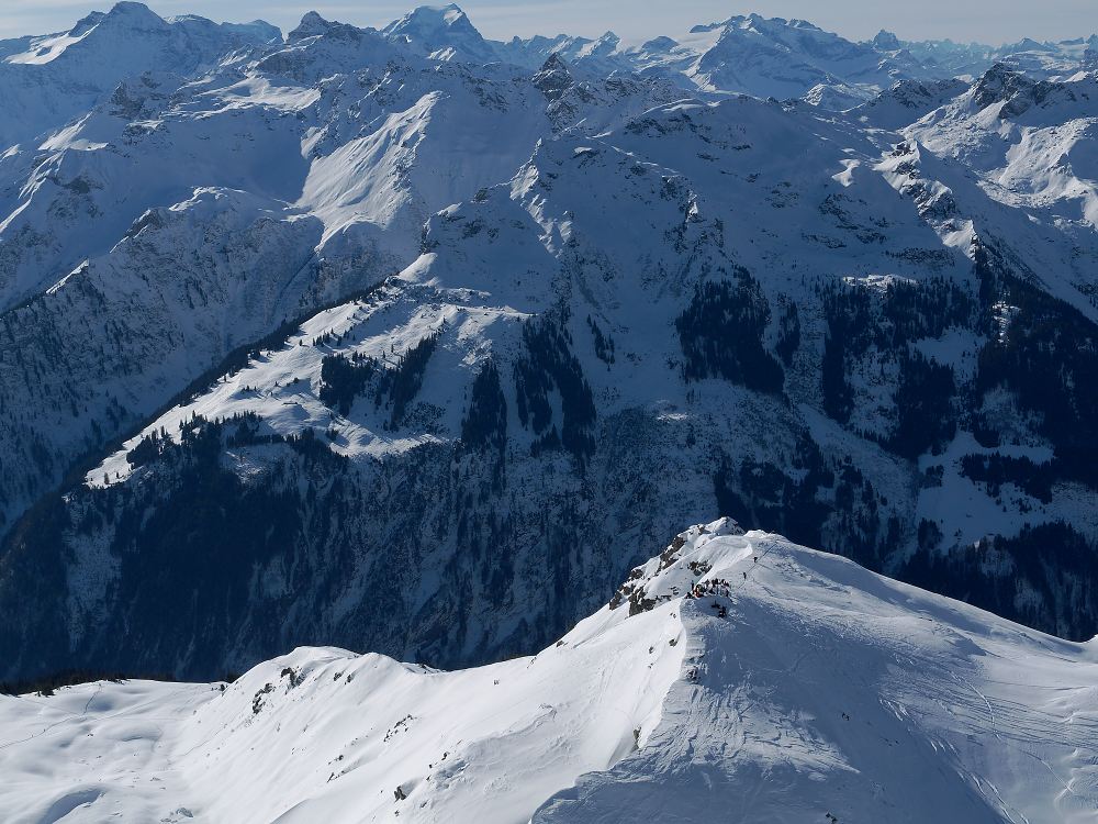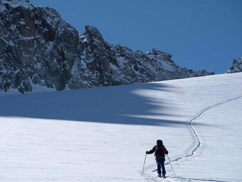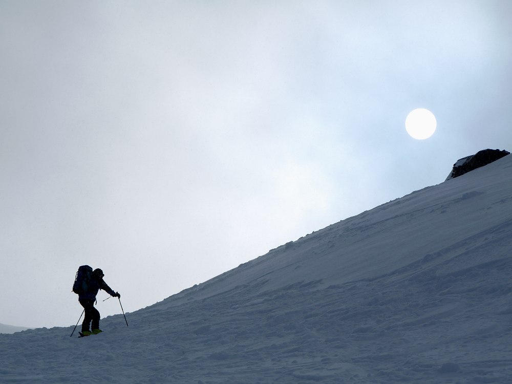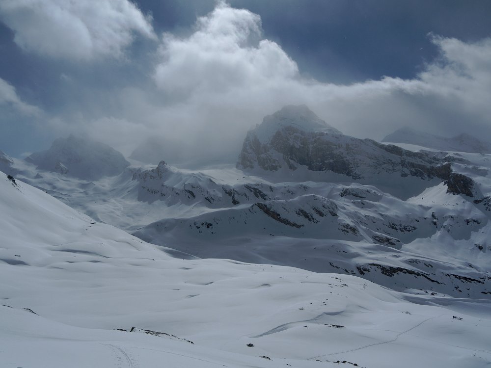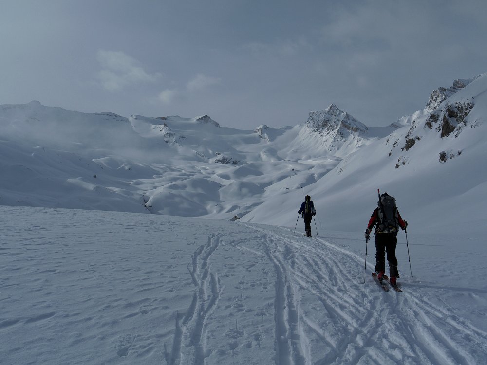 Schnee: schattseitig Pulver, sonst Bruchharsch/Harsch, viele Spuren